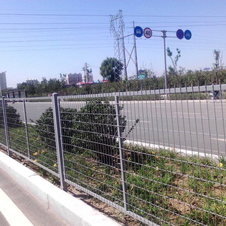 公路围地铁丝网围栏 公路田地隔离网 隔离焊接网围栏,公路道路防护网是一个类型的护栏网的总称,框架勾花网、高速公路护栏网、双边护栏网、桃形柱围栏等多种样式的护栏产品都可以用在道路防护上。道路防护网产品对护网的规格都有一定的要求,安全性要求高。采用的原材料的规格也比普通的防护网产品要好。