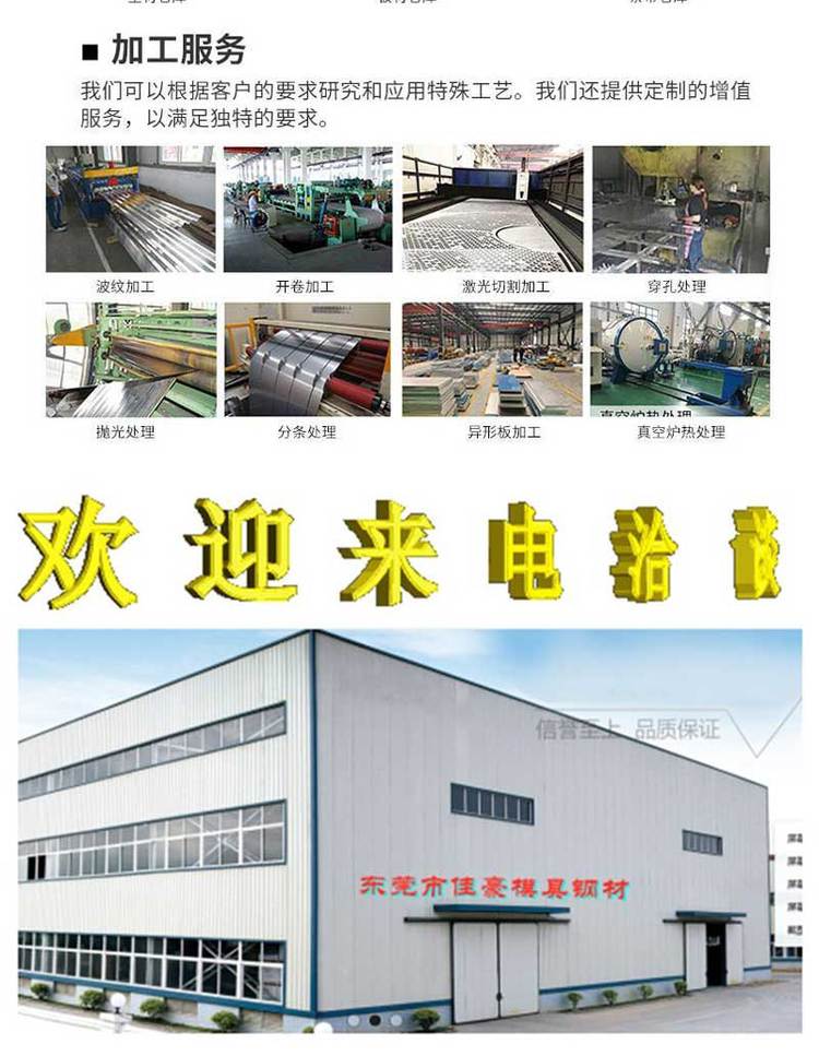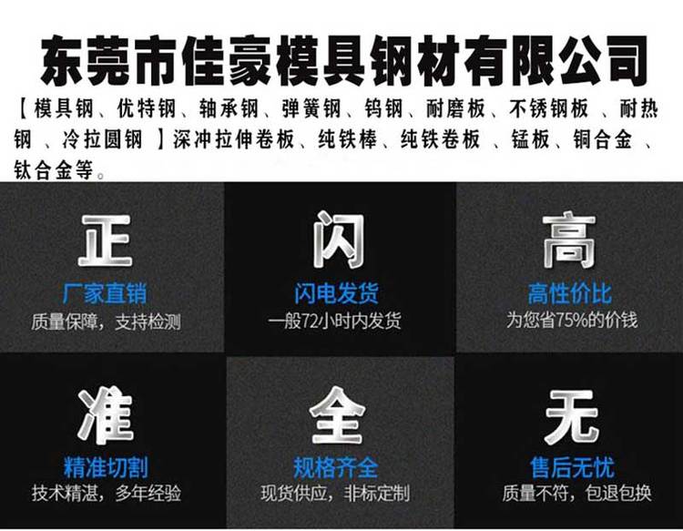 公司主要合作厂商,宝钢集团,兴澄特钢,西宁特钢,大冶特钢,长城特钢等国内大型特钢企业,及德国”撒斯特“特殊钢,日本日立金属“日立HITACHI"特殊钢大同钢材“大同DAIDO”特殊钢等世界优质特钢厂 可以订做各种规格的冷拉钢。特殊规格板材。及热处理(正火、退火或高温回火)状态交货。 可供格:圆钢Φ1.0-Φ16 Φ16-Φ160 可做拉光盘圆或直条交货。并可根据客户要求,做球化退火,以及磷酸膜披覆等。 Φ160-Φ1000 也可以根据客户要求订做各类大直径锻圆,或特殊锻件. 板材:1.0-850*(10-2000)*L 可根据客户要求加工各类薄板,精磨板等.