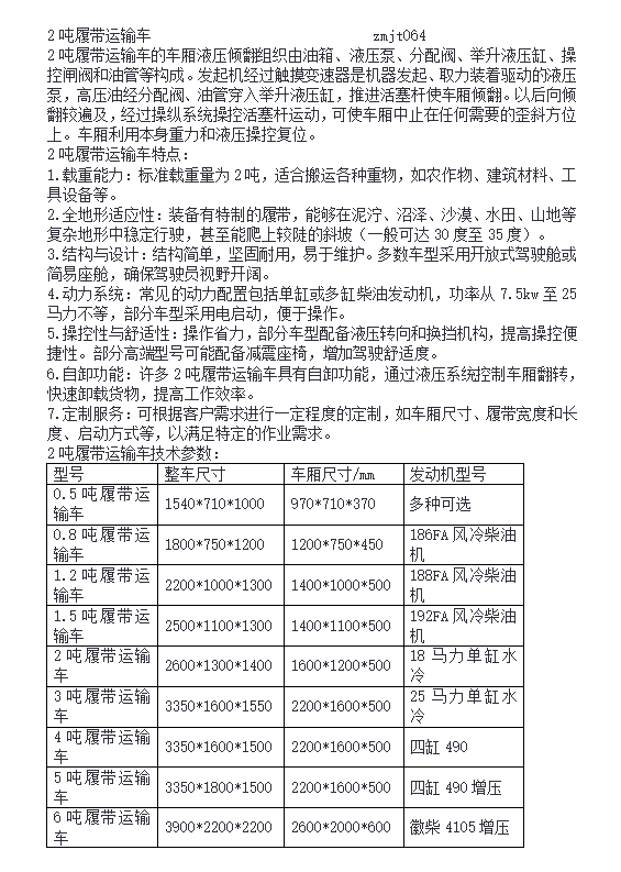 型号 | 2吨履带运输车 | ||