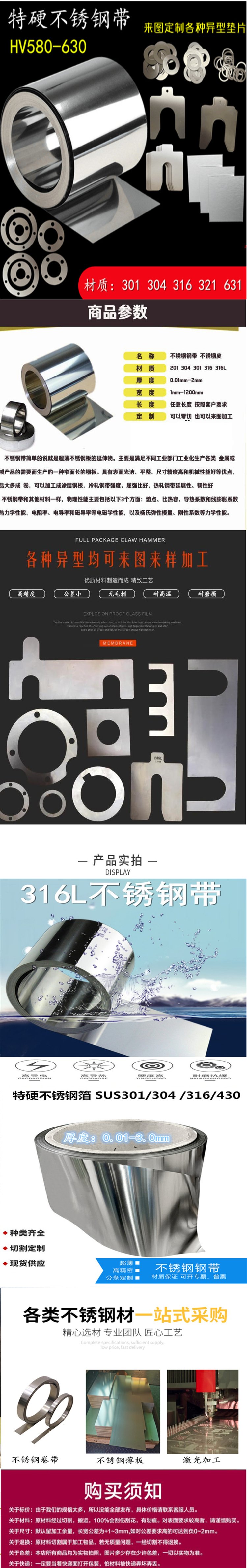 316H不锈钢带 0.1 0.15 0.2mm硬态高强度不锈钢箔1/2 3/4不锈钢卷带 品牌 | 昊太 | ||