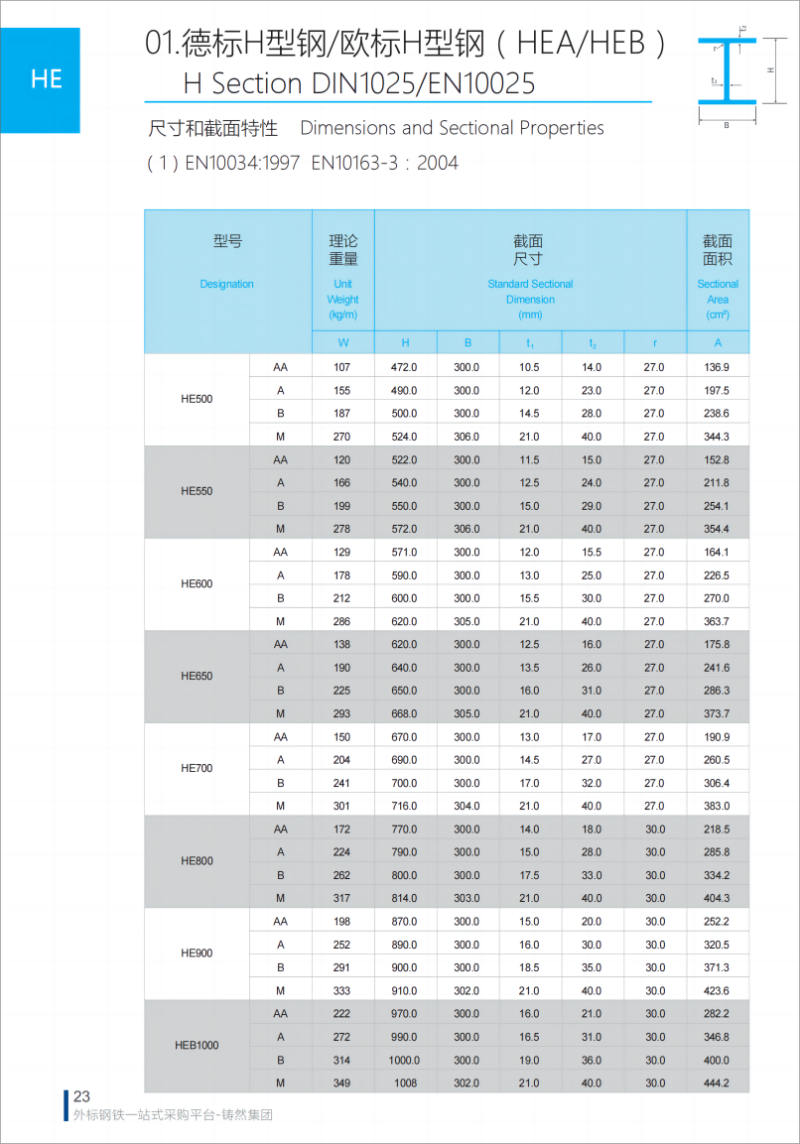 HE200B欧标H型钢HEB200*200*9*15米规格尺寸表