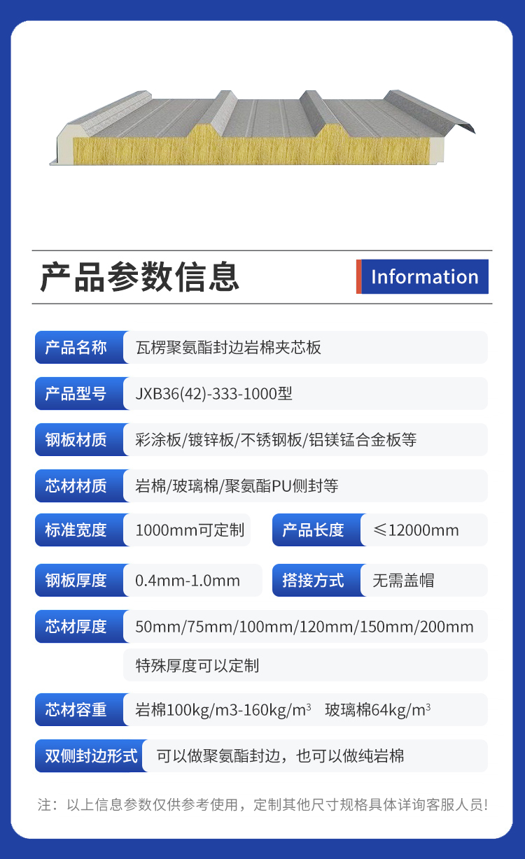 产品名称 | 瓦楞聚氨酯封边岩棉夹芯板 | ||