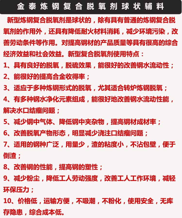 性能 | 钢水脱氧、脱硫 | ||