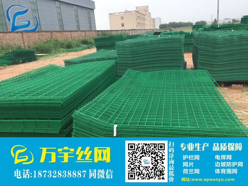 框架护栏网采用优质盘条作为原材料,经由镀锌、涂前底漆和高附着力粉末喷涂三层保护的焊接式网片,具有日久抗腐蚀、抗紫外线的特性。在这种护栏网的表面处理为镀锌和喷涂,也可以任选一种,顶端盖有塑料盖或防雨帽。根据环境和安装方式不同,可选用预埋50cm、加底座等方式。将框架护栏网的网片和立柱靠螺丝和各类特殊的塑料或铁的卡子连接。所有的螺丝均为自动防盗的。
