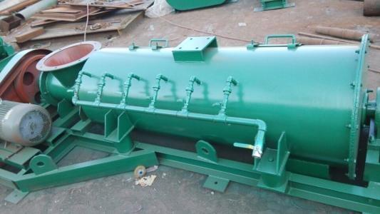单轴加湿机:本设备安装在灰库、灰斗下部,由叶轮给料机把干灰均匀地输入到机内,通过旋转的带螺旋叶片的棘轮把干粉灰搅拌打散,同时加入适量的水进行强制混合,半将达到通宝湿度的混合料推向出料口排出,达到加湿排放避免二次物尘的目的。