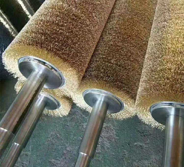 丝刷辊由一系列的不锈钢丝刷辊安装在全自动高速运转的毛刷抛光机(刷光机)上,对钢材或者铝材表面进行一系列的去锈抛光处理。
