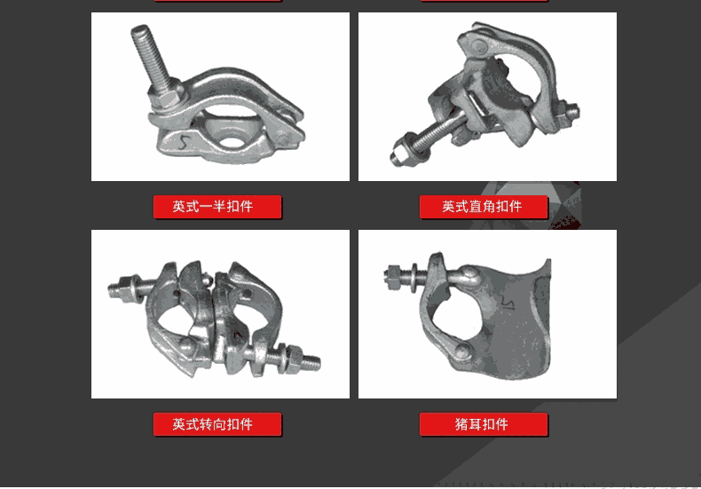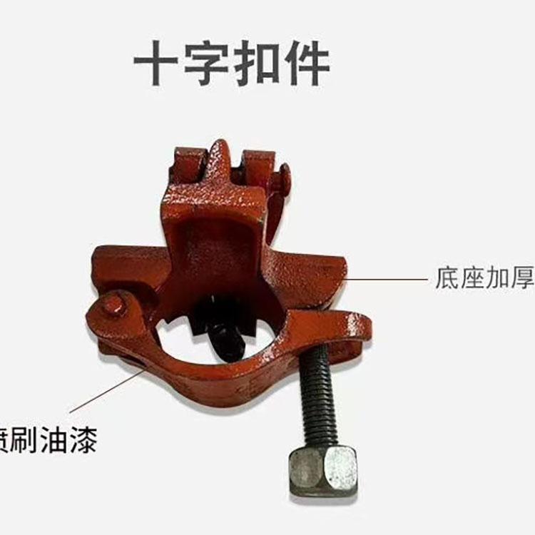 结构先进,全钢板冷压成型,强度及韧性超过国家标准及国际标准,彻底消除了铸铁老扣件因扣件断裂导致脚手架坍塌的事故隐患。