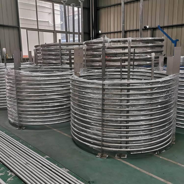 钛盘管主要用来作为容器的加热和冷却,钛盘管的固定方式分为可拆和不可拆2种,这要根据物料的介质和对钛盘管的腐蚀情况而定,但在设计中主要以可拆式为主,方便钛盘管的检修及清洗。