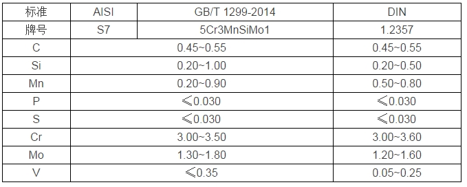 S7对应国标牌号为5Cr3MnSiMo1,成分一致。