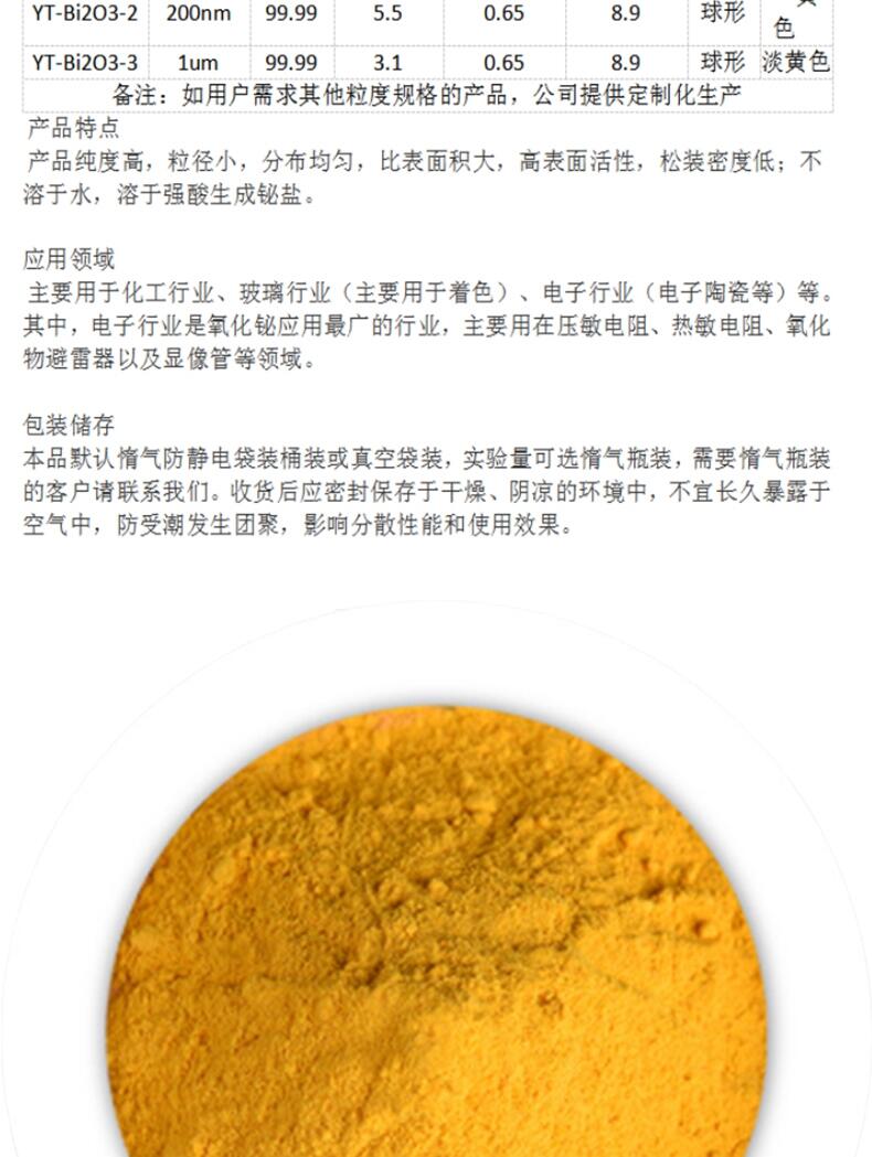 氧化铋粉末 微米三氧化二铋粉末 Bi2O3 纳米氧化铋粉末 科研专用