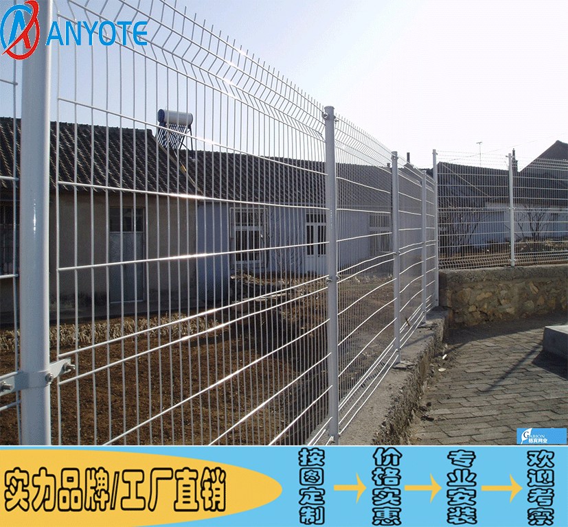 经过几年的风霜雨雪,太阳的暴晒,还是光亮如新,抗紫外线能力极强。绿色的草坪在白色金属网的衬托下,显得清新整洁.结构:用低碳钢丝编织焊接成的金属网冲压折弯卷成圆筒状后,用连接附件与钢管支柱相连固定.优点:具有强度高、钢性好、造型美观、视野宽广、安装简便,感觉明亮、轻盈、实用的特点,网片与网柱连接十分紧凑,整体感好;上下卷圈使网面强度显著增加.用途:用于高速公路、机场、市政绿地、园林花坛、单位绿地、港口绿地的装饰防护。