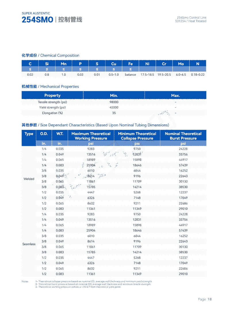 4、254SMO的高含钼量能使其在退火时有较高的氧化速度,从而在酸洗后具有比普通不锈钢更粗糙的表面。但这对该钢的抗腐蚀性没有不利的影响。