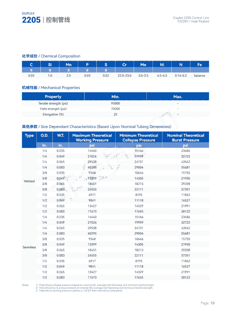 2205双相不锈钢中铬、钼及氮的含量使其在氧化性及酸性的溶液中, 对点腐蚀及隙腐蚀具有很强的抵抗能力。