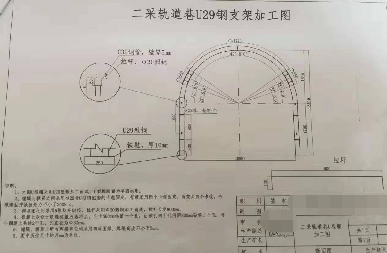 29U型钢支架直墙半圆拱支架抢棚在采准巷道交岔点的应用,并取得了显着的成效,29U型钢支架较其他刚性支架具有可缩性和稳定可靠的承载能力,适应松软岩的载荷和变形,断面利用率高,支架支回方便,支架复用率高,在减少坑木使用,环保效益十分明显。