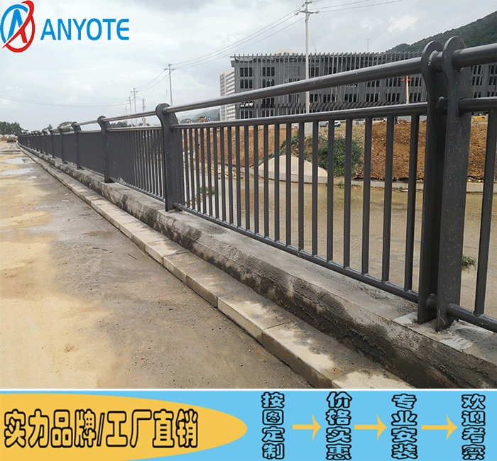 桥梁护栏划分桥梁护栏的类型方式很多,除按设置位置划分外,也可按构造特征、防撞性能等划分。按设置位置归纳为桥侧护栏、桥梁分隔带护栏和人行、车道分界处护栏;按构造特征归纳为梁柱式(金属制和混凝土)护栏、钢筋水泥墙式扩栏和组合式护栏;按防撞性能归纳为刚性护栏、半刚性护栏和柔性护栏。一般见的护栏形式有混凝土护栏、波形梁护栏和缆索护栏。