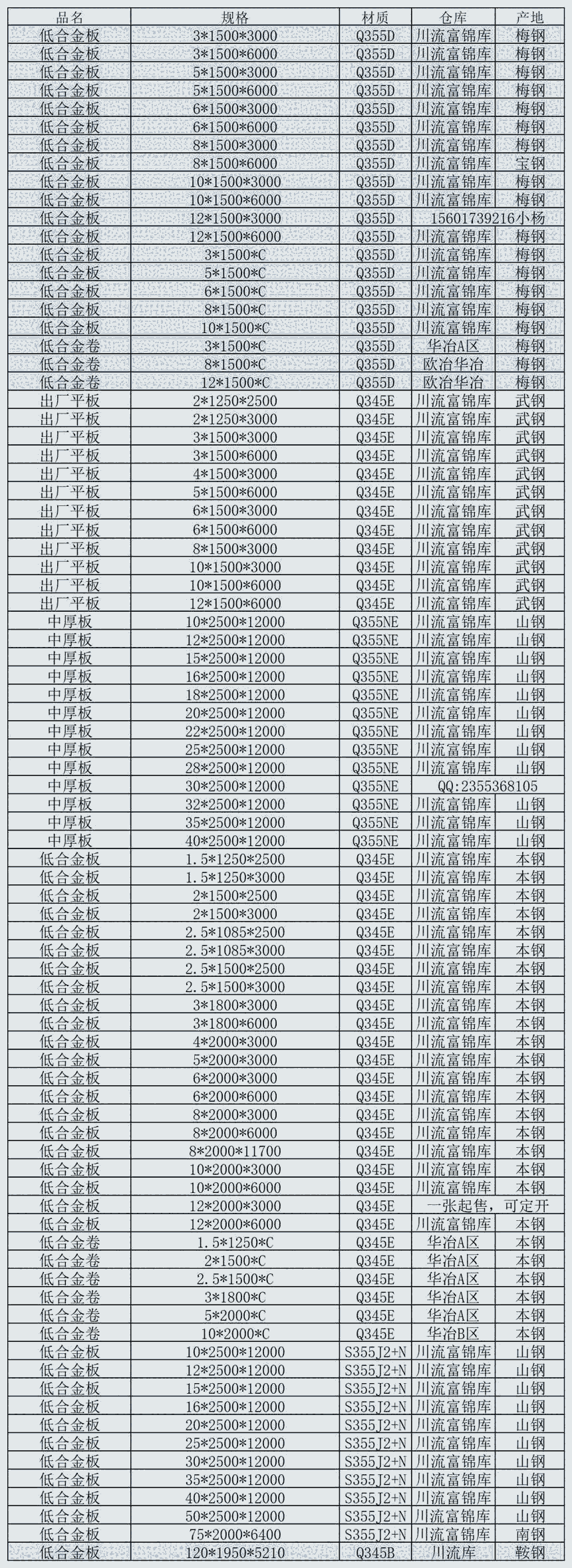 低合金板 | 5*1500*3000 | Q355D | 川流富锦库 | 梅钢 | 4470 |