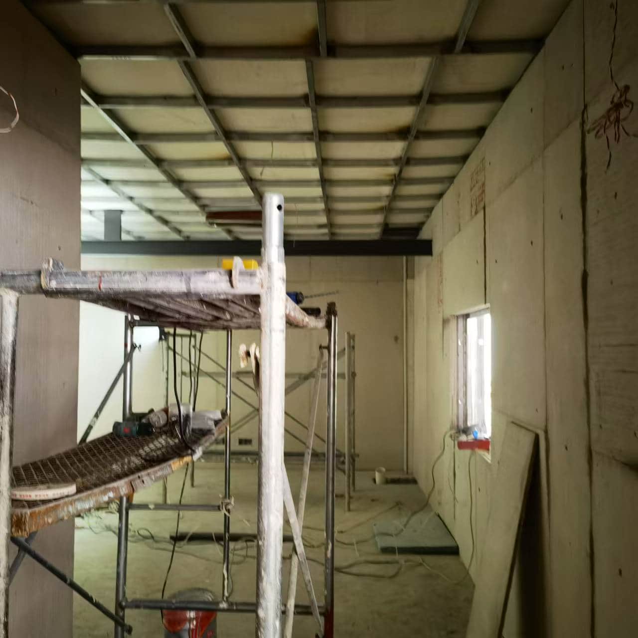 根据我方施工图和现场实际情况在各机房弹水平线作为控制线,并以次根据图纸弹出棚面和地面水平控制线。