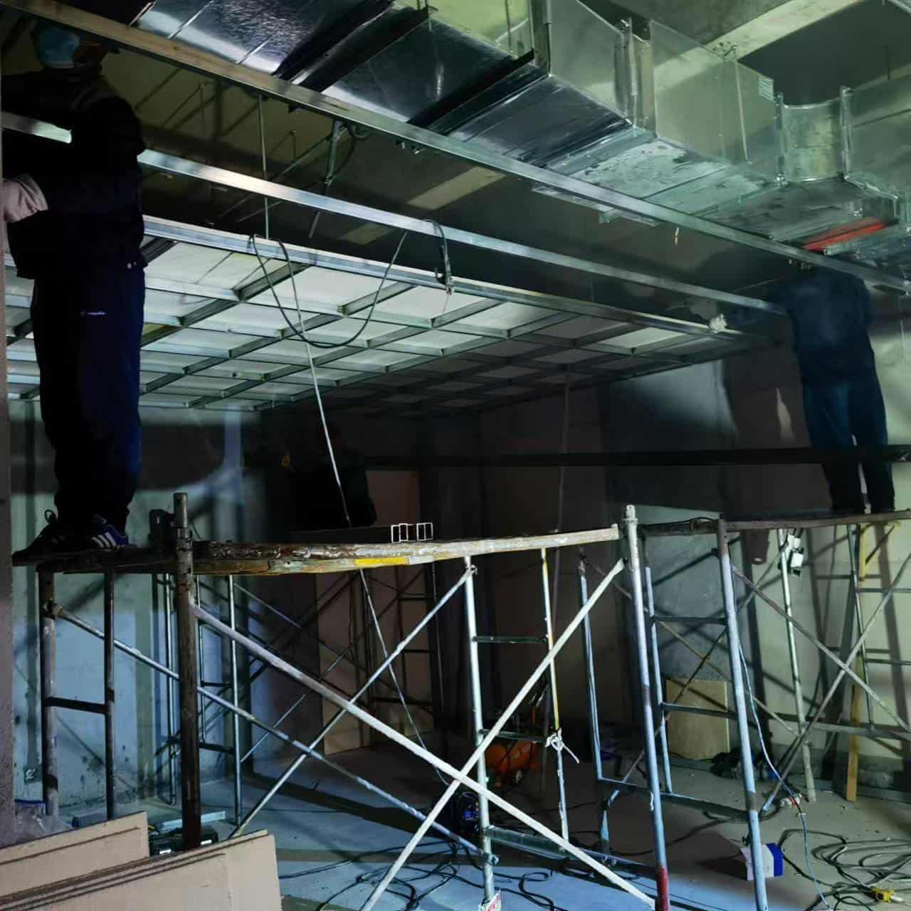 根据我方施工图和现场实际情况在各机房弹水平线作为控制线,并以次根据图纸弹出棚面和地面水平控制线。