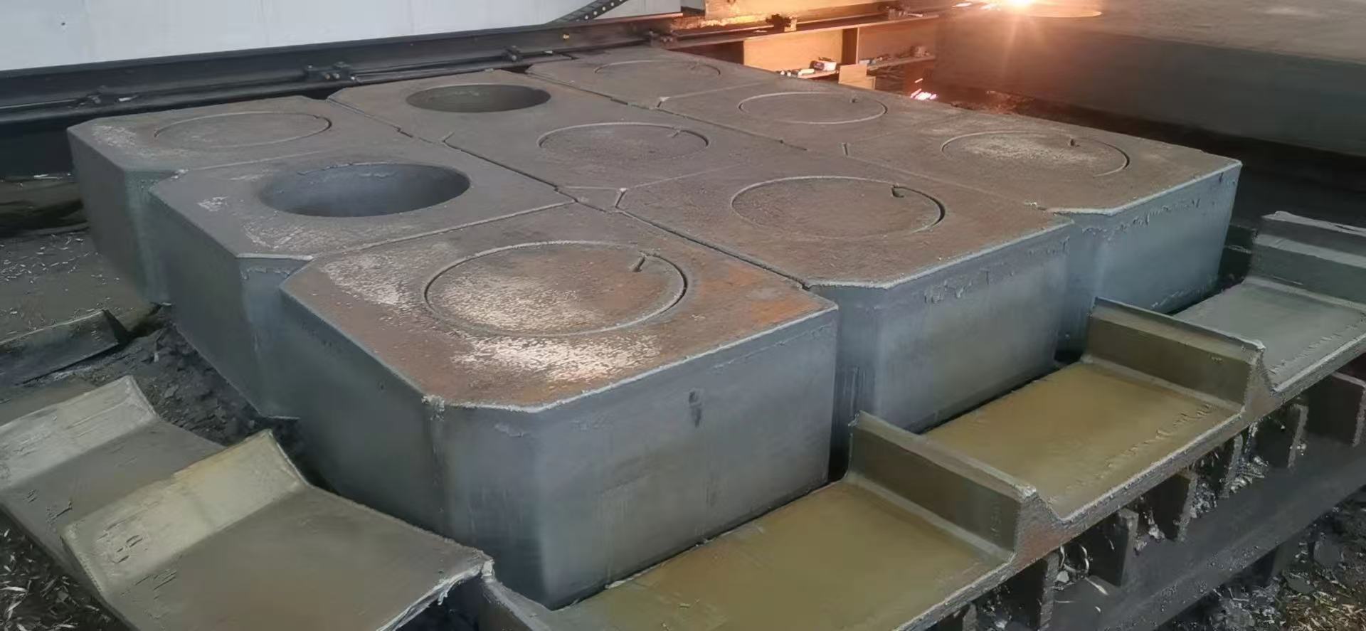下料范围:减速机轴承座、齿轮箱体轴承座、焊管机设备机架、牌坊、滑块、风电法兰盘、锻压设备、轧钢机牌坊、轴承座 重型机械底座、配重块等切割件下料