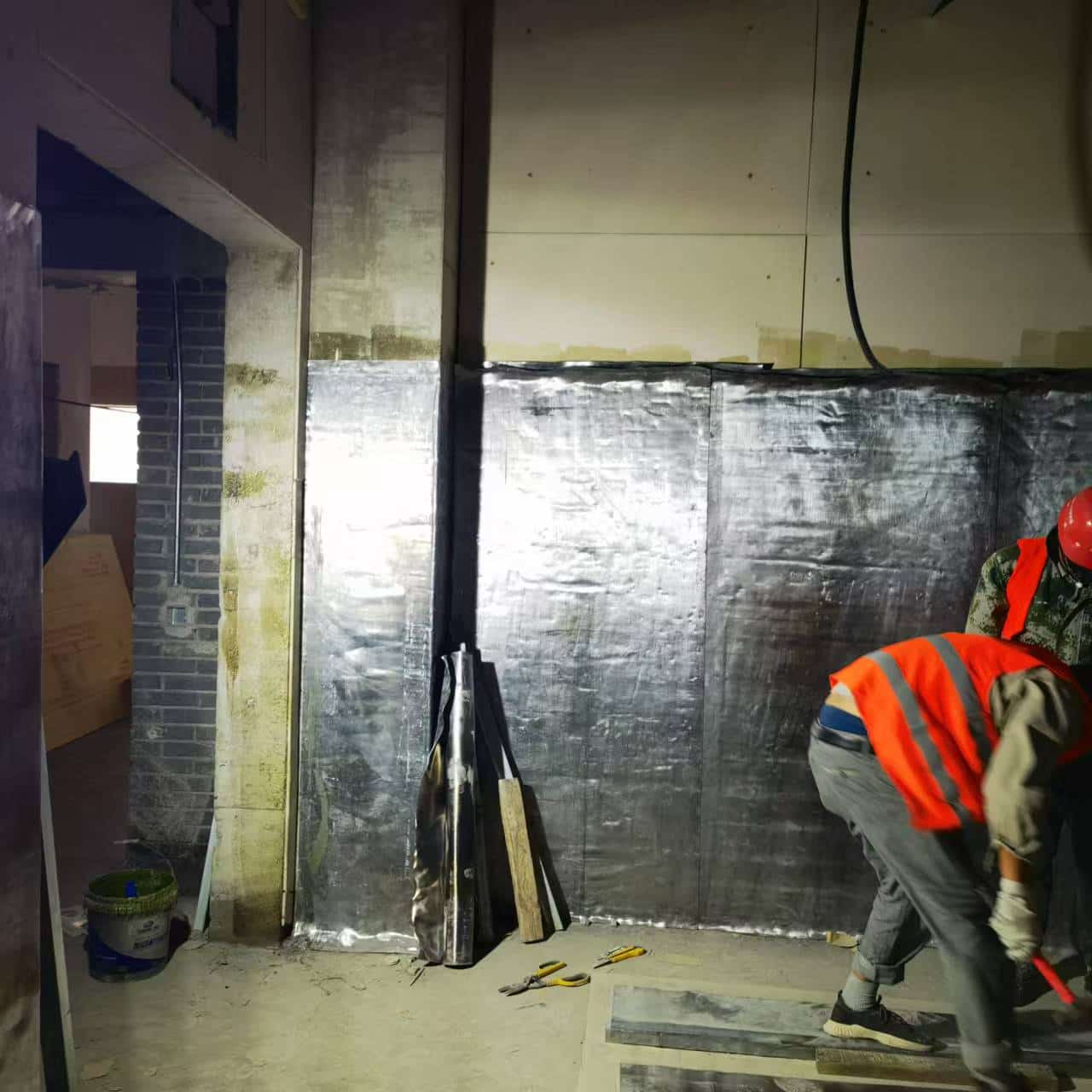 · 施工前准备:清理施工现场,确保墙面平整、干燥、无油污,墙面平整度误差应≤5mm,含水率 < 8%。准备好硫酸钡板、专用粘合剂、钢排枪、橡皮锤等施工工具。
