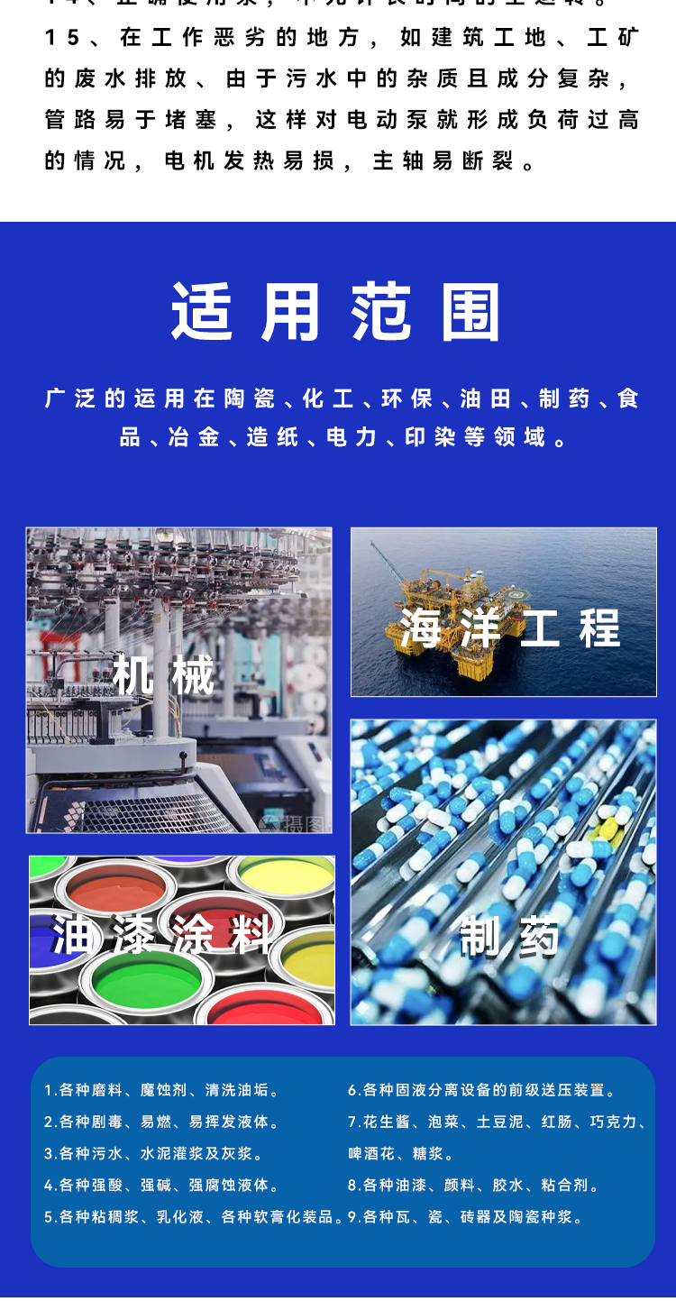 适用范围 | 一切工业用泵 | ||