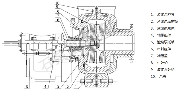 350S-L渣浆泵材质:L型轻型渣浆泵的泵体具有可更换的耐磨金属内衬,叶轮、护套、护板等过流部件均采用耐磨金属。