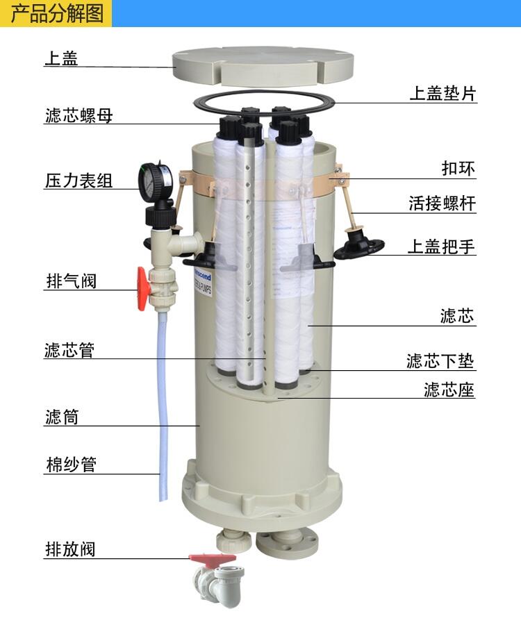创升机械化学液过滤器以射出一体成型PP材料制成,组装维修容易。泵浦采用无轴封磁力泵设计,无泄漏之虑。同时根据电镀种类的不同,适用于镀槽容量1000至25000升槽准过滤。操作温度可达70℃,也可根据不同需要、可选用滤芯锁帽、滤芯压板式、滤纸式滤材设计、过滤精度高。