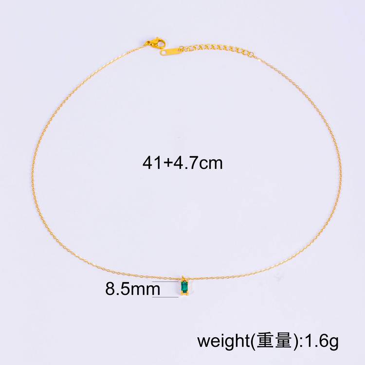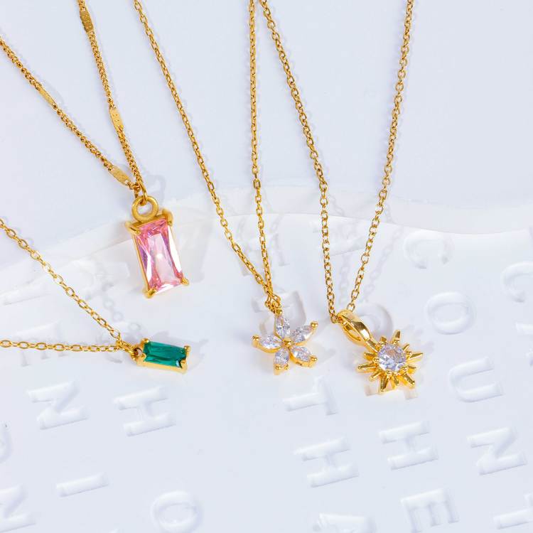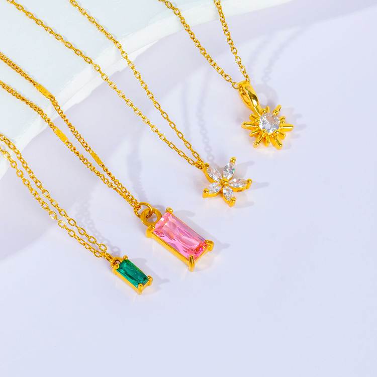 恒达鑫长方形粉色玻璃水晶项链首饰PVD镀金饰品厂家