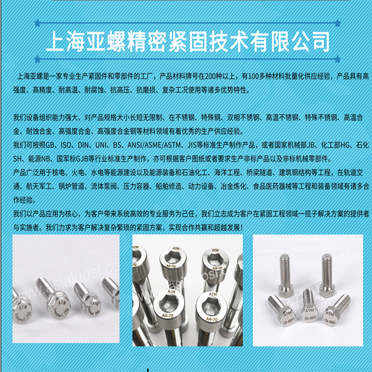 功能用途 | 汽车工业,核电工业耐高温高强度紧固件 | ||