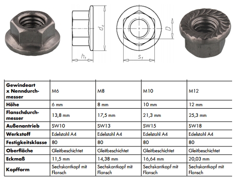 2、货号:UKV,(Similar to DIN6923) 材质:不锈钢A4-80 钝化, 涂覆表面:GL627规格:M6-M12