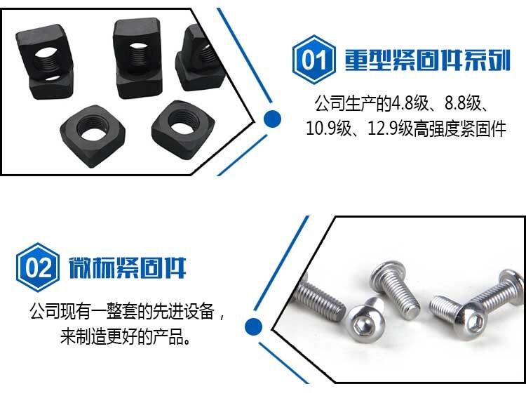 C1008/C1010/C1015/C1018/C1022)、中碳钢(比如C1035)、高碳钢(C1045/C1050)、合金钢(SCM435/10B21/40Cr)。一般C1008材质都是打普通等级产品,比如说4.8级螺丝,普通等级螺母;C1015一般打吊环螺丝;C1018一般做机螺丝,当然也有拿来做自攻钉的;C1022一般用来做自攻钉;C1035打8.8级螺丝;C1045/10B21/40Cr打10.9级螺丝;40Cr/SCM435打12.9级螺丝。不锈钢则有SS302/SS304/SS316为最常见。当然现在也流行大量SS201产品,甚至含镍量更低的产品,我们叫非正宗不锈钢产品;外观看上去跟不锈钢差不多,但是防腐性能相差很多。