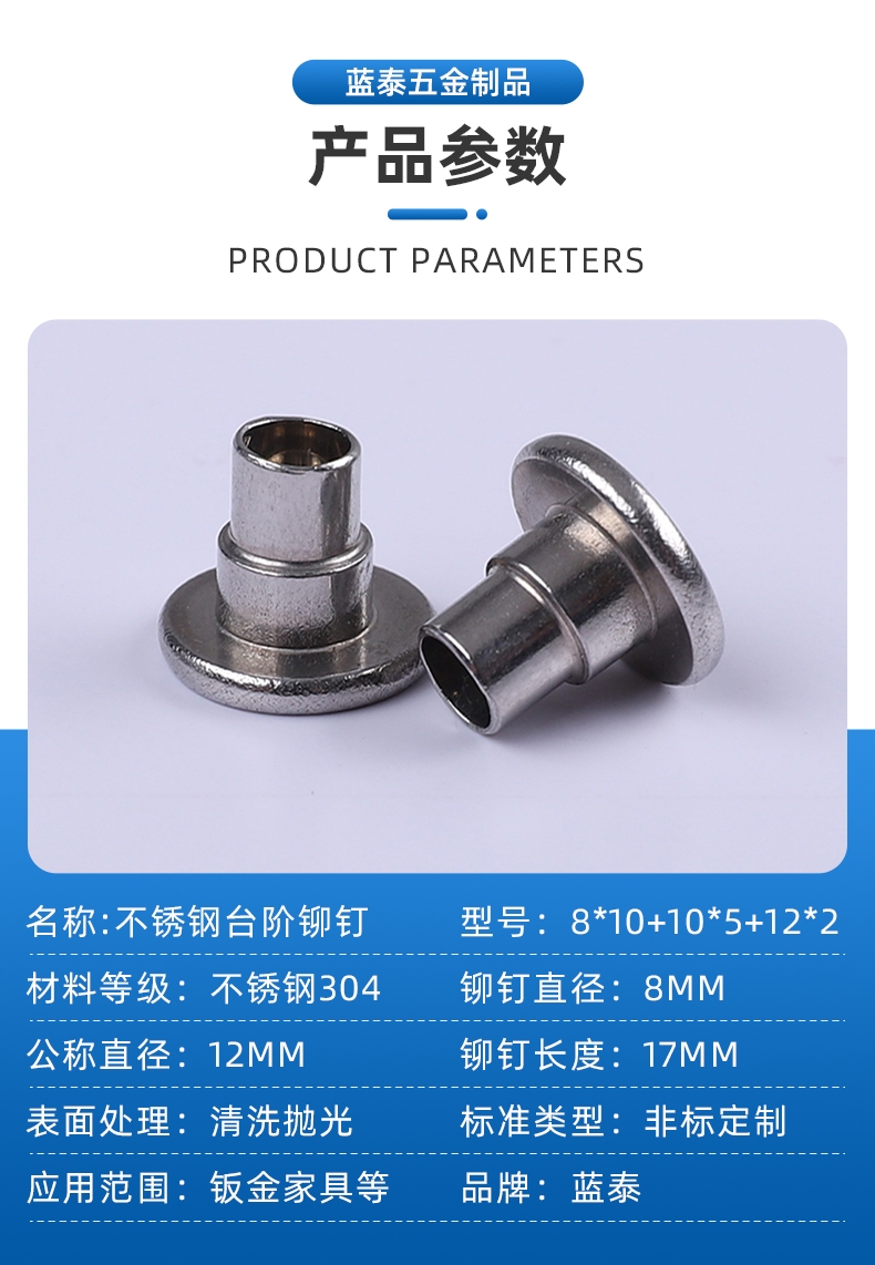 非标铆钉 不锈钢304台阶铆钉 平头半空心台阶铆钉 双头同时铆接