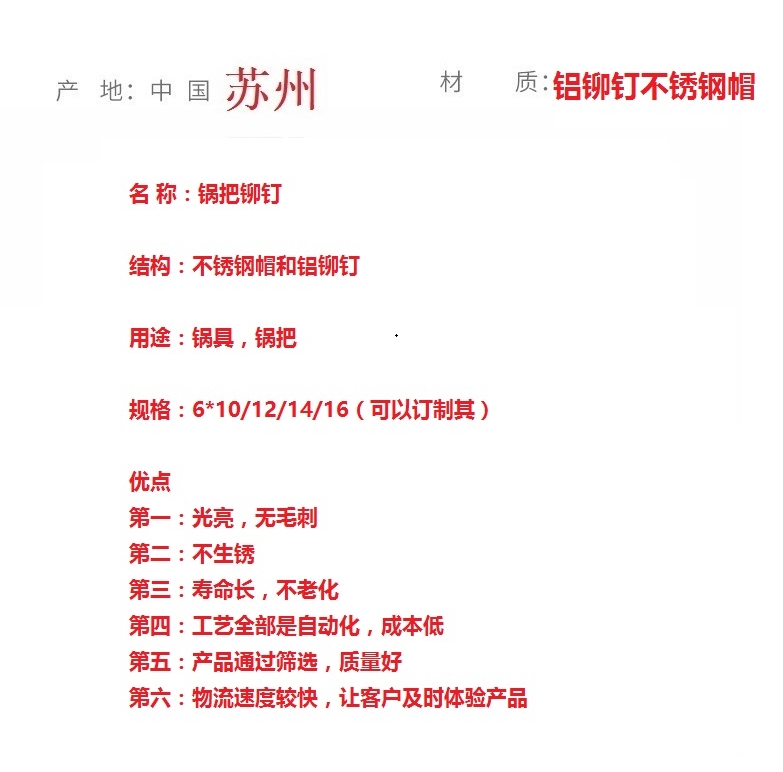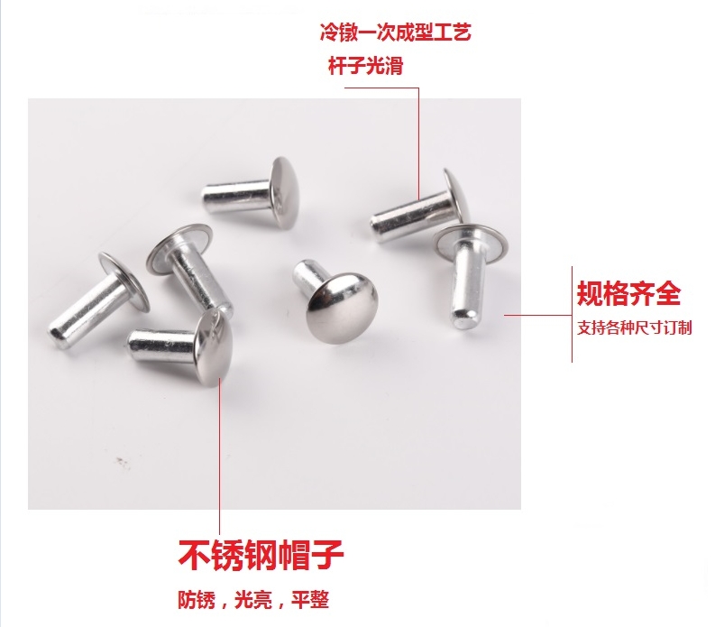 实心铝铆钉 不锈钢包头铝铆钉 半圆头实心铝铆钉 锅具铆钉 锅把铆钉 手把铆钉 |