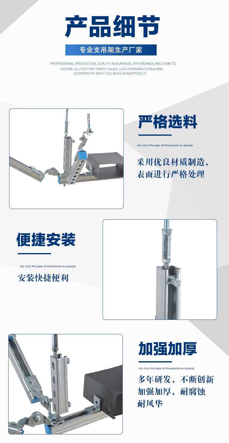 湖北宜昌q235b热镀锌桥架侧向纵向抗震支架