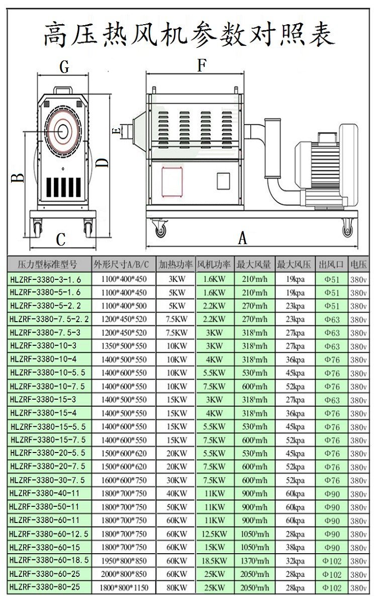 一、高压型热风机产品描述:热风快速吹出去,比常规的热风机压力大,将源源不断的热风吹道里面去把水份全部烘干热器采用风洞结构,高温体隔热棉与不绣钢三层一体封装,电阻丝直接加热,通道式电热交换方式,设计科学,工艺先进,升温快速,开机即出热风,连续PID/SSR(PID/SCR)控制,数码显示/设置温度,常温使用至160℃-350℃全程可控,热惯性小。