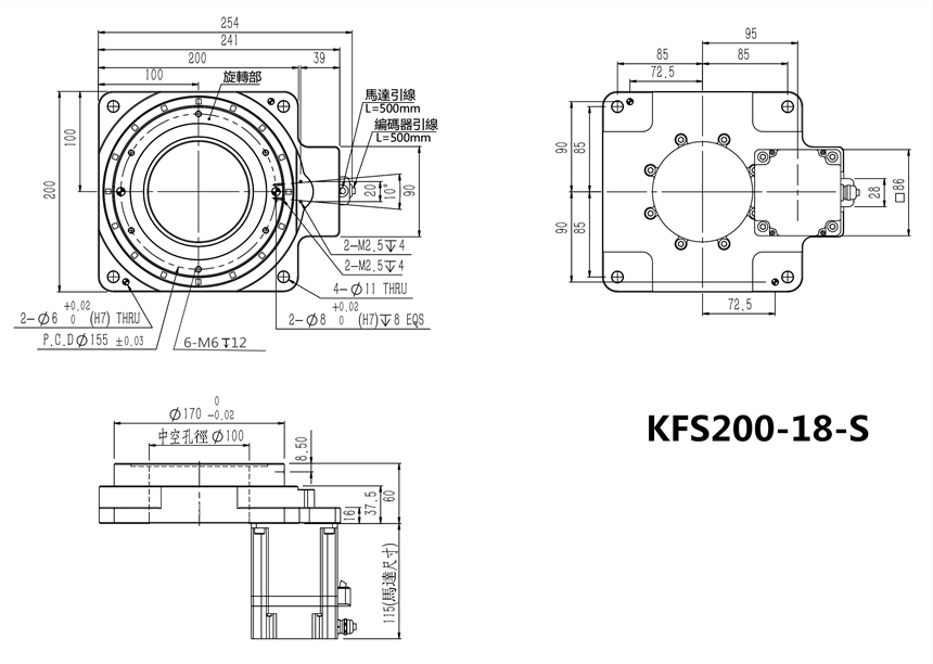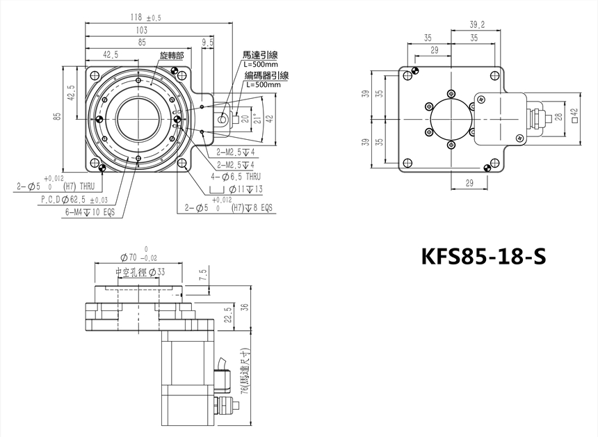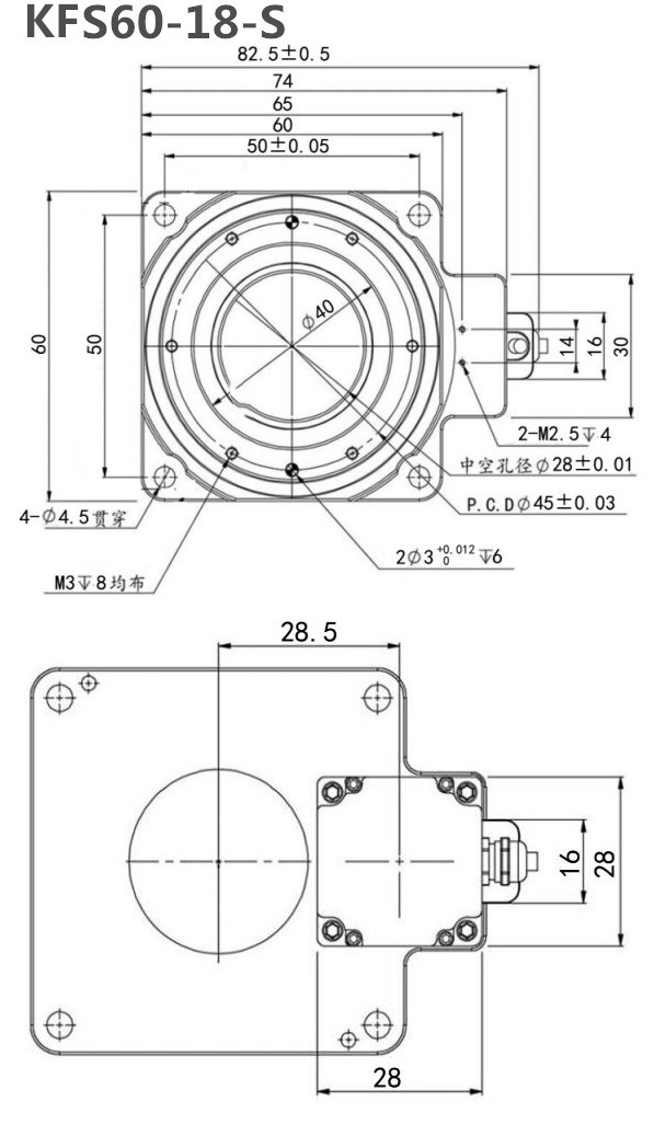 (4)自带零点开关: 旋转平台配置光电开关及感应片,方便电气中的零点控制,简化机械设计流程