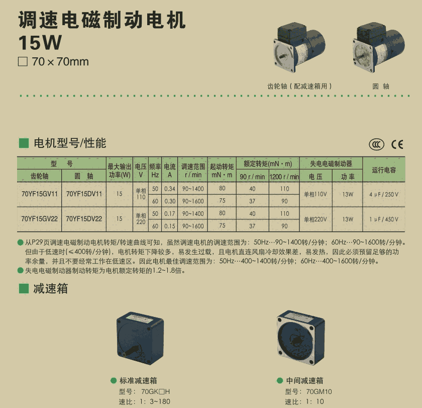 内装失电电磁制动器和速度反馈测速器,配套驱动器实现闭环速度控制。制动器断电,衔铁释放同时弹簧是衔铁复位压紧摩擦盘,电机轴被摩擦盘抱住,制动保持负载。调速范围广,50HZ:90-1400r/min,可实现缓慢加速,缓慢减速,快速停止0-10V模拟量控制。