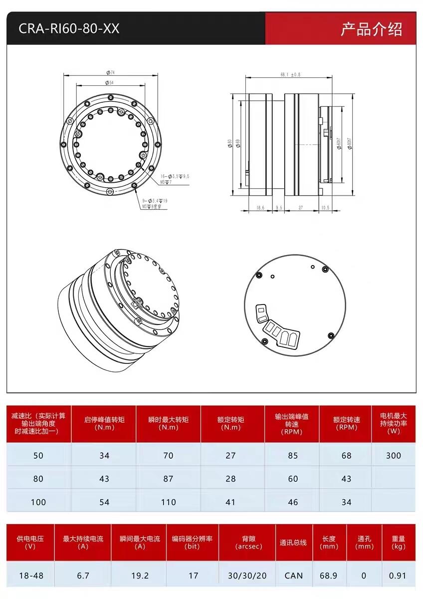 机器人关节模组协作机械手臂 谐波减速器伺服电机编码驱动一体CAN
