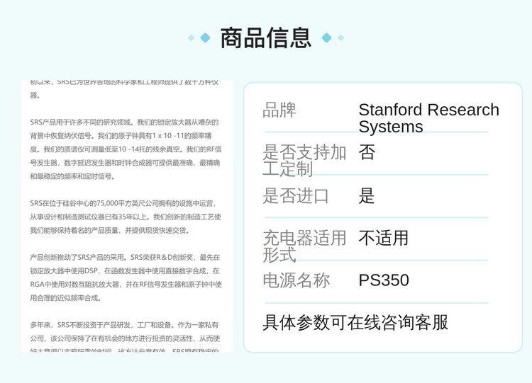 美国Stanford Research Systems(SRS)前置放大器/直流高压电源PS350 品牌 | Stanford Research Systems | ||