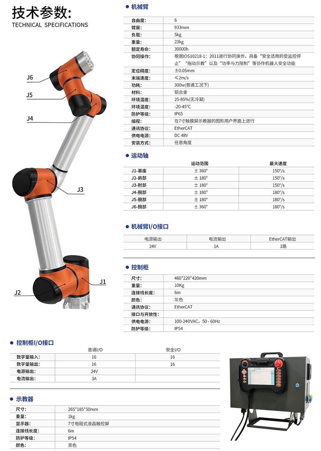 深圳泰科智能TB6-R5协作机器人是一款灵活的轻型工业协作机器人,具有精巧的机械结构设计。这款协作机器人有效负载为5KG,自重仅为23KG,重复定位精度可达±0.05mm,适应多样性、柔性生产应用需求。模块化关节设计,使关节模组拆卸及更换更快捷,易于安装及维护。拥有轻量化、用途广泛、易于使用的特点,旨在帮助企业提高经济效益。