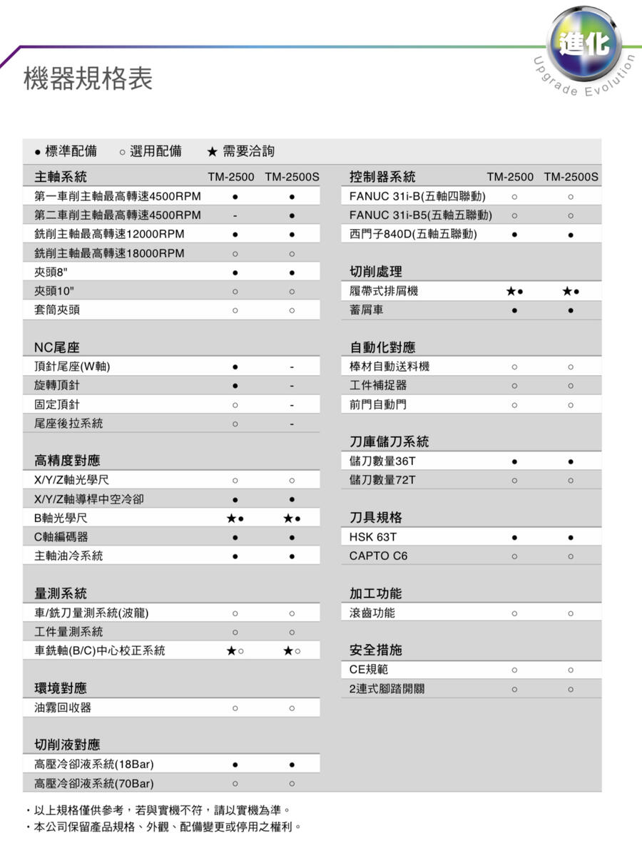 TM-2500五轴车铣复合加工中心、TM-2500S五轴双主轴刀塔车铣复合加工中心、TM-2500STM五轴双主轴双刀塔车铣复合加工中心 |