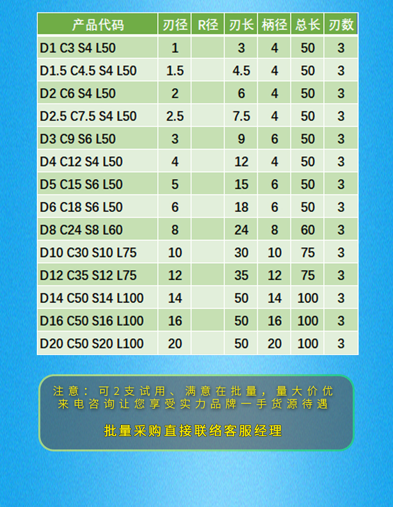 刃径范围1-20mm