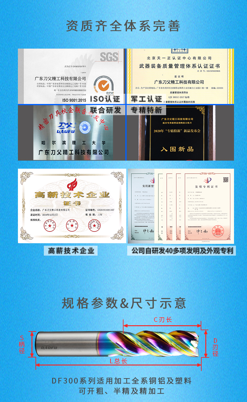 刀父品牌1-20mmDLC纳米涂层七彩精修高光铝用铣刀