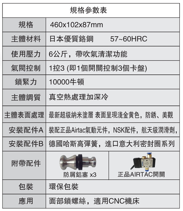 重復定位精度±0.002mm,主要用于電極或工件加工,超薄的設計使加工時穩定性更好,夾持力可達到7000N以上,柡配連接底板。