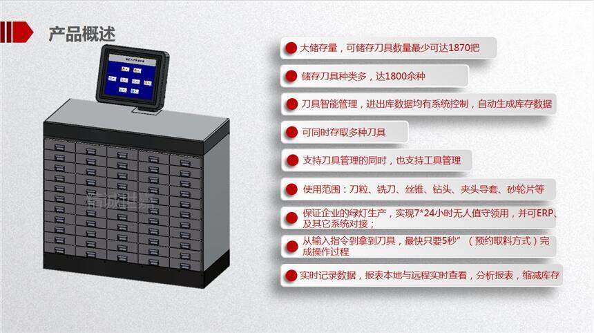 我们做到物联网:无需人员管理,及时掌握物料工具实时情况,包含实时库存,使用数量,剩余数量,刀具回收,库存预警,供应商管理,工序管理,生产采购计划管理,预算与分析。