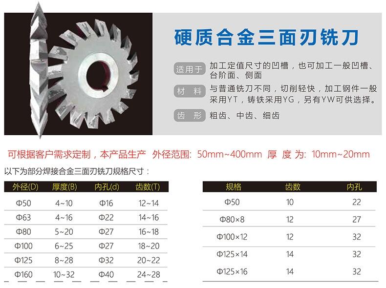 厂家直销三面刃铣刀硬质合金 粗齿合金圆盘锯片铣刀 10/20mm