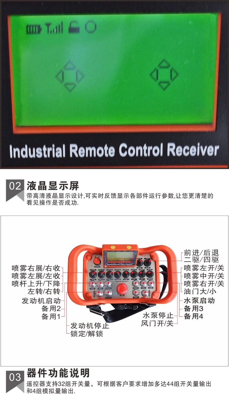控制喷雾左中右的开/关以及喷杆的上升/下降等功能.