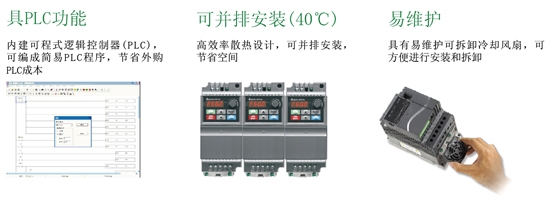 本系列采用弹性模块的设计,最大的特色是内置PLC功能,可编写简易程序储存与执行;并可外加特殊功能扩展卡及通讯卡,是小马力型的最佳代表,满足业界最多元化的需求。
