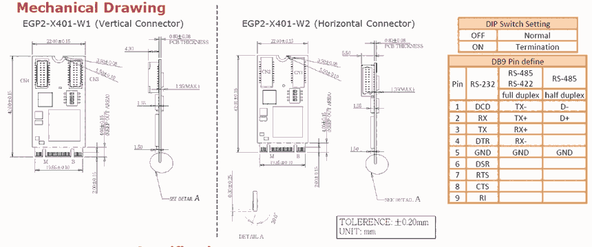 EGP2-X401-W1 | Vertical connector, Wide Temp. |