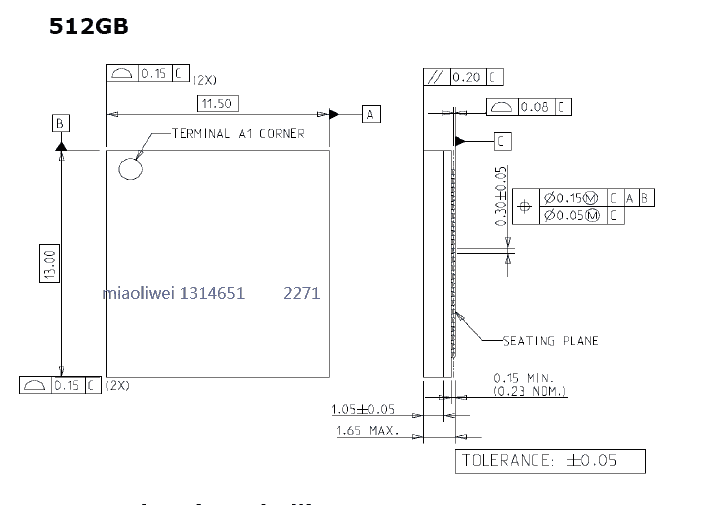 11.5 x 13.0 x 1.65 mm (*see detailed in the above mechanical drawings) |